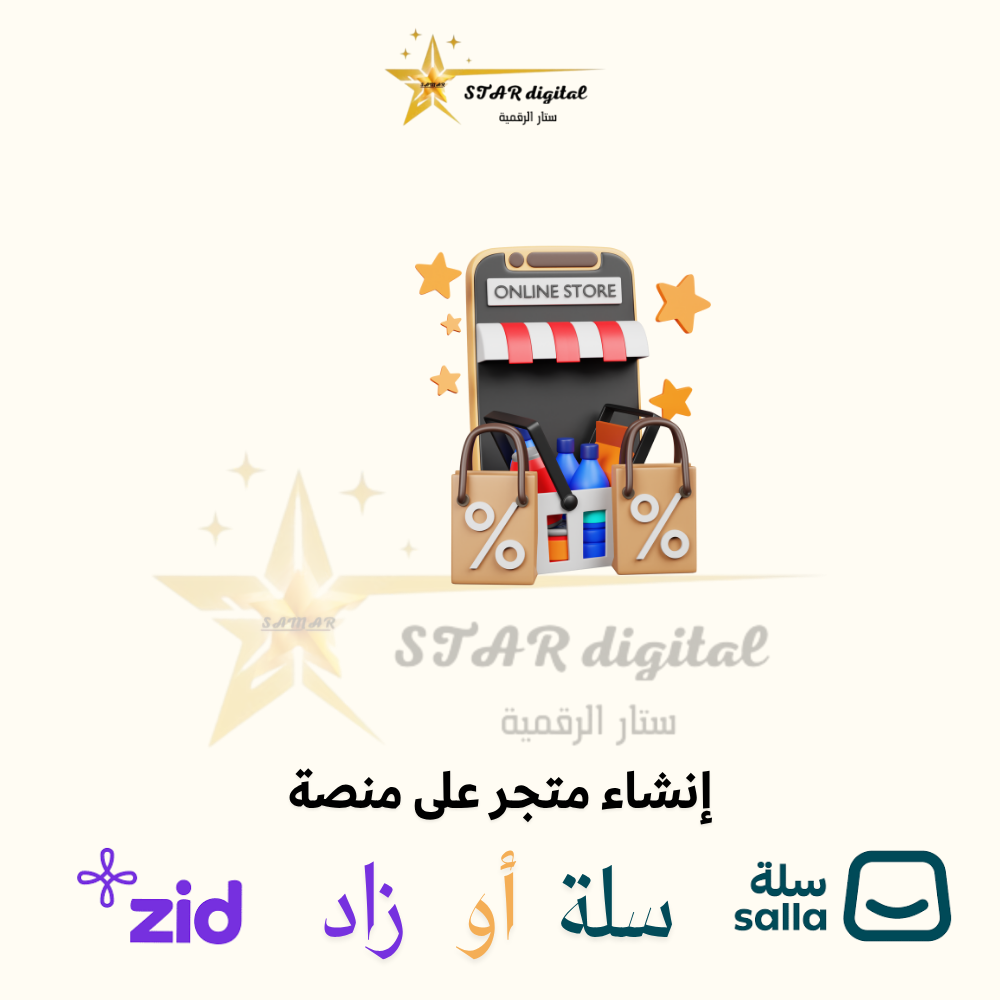 ستار الرقمي هو شريكك الأمثل لإنشاء متجر إلكتروني احترافي ومُحسَّن على منصات سلة وزد. اطلب خدمتك الآن وابدأ رحلتك في التجارة الإلكترونية بثقة ونجاح!
