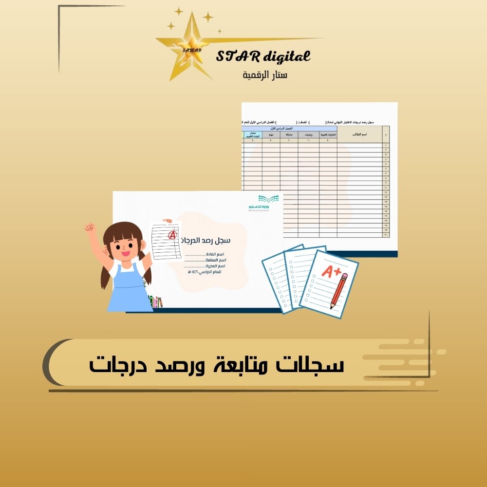 ارتقِ بجودة إدارة الدرجات في مدرستك! اطلب خدمة تصميم سجلات متابعة ورصد الدرجات من ستار الرقمي اليوم.